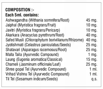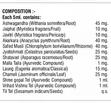 Huile ayurvédique traditionnellement utilisée pour améliorer la force et la vitalité.